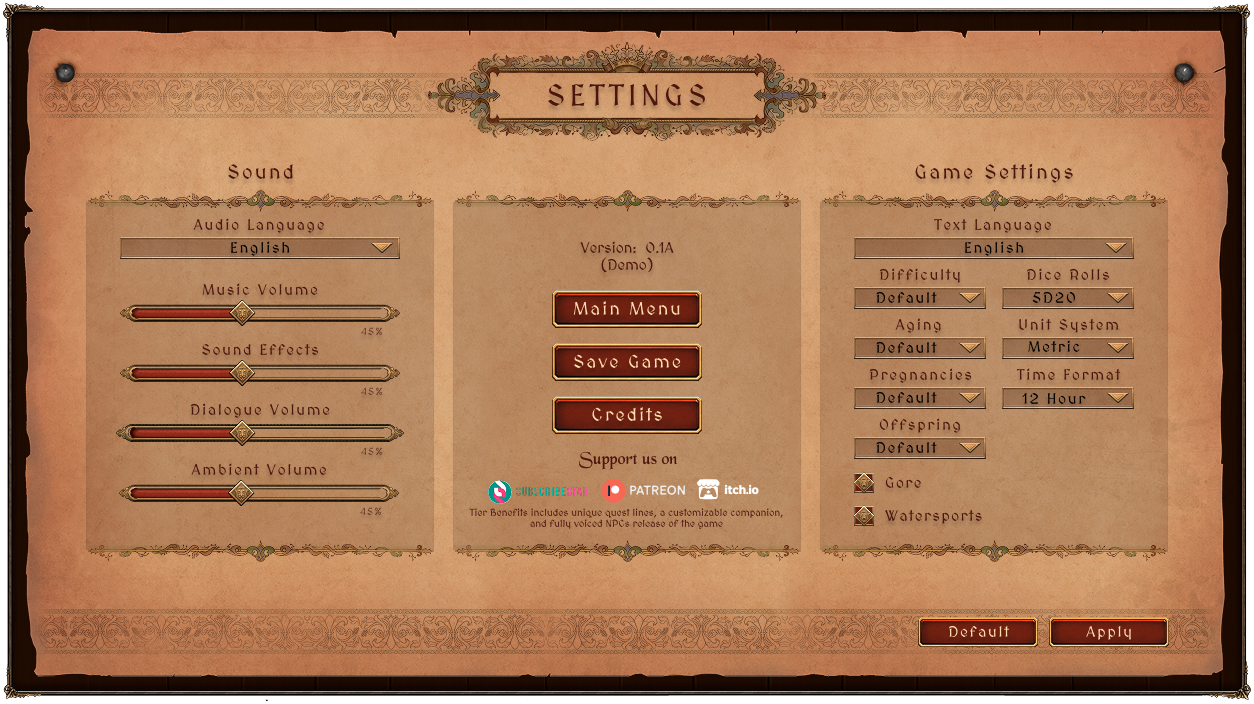 You can support The World of Bemoria by subscribing on Patreon or SubscribeStar! Supporters gain access to exclusive content such as the fully voiced version of the game, special storylines, early builds, and voting rights to influence future development.
